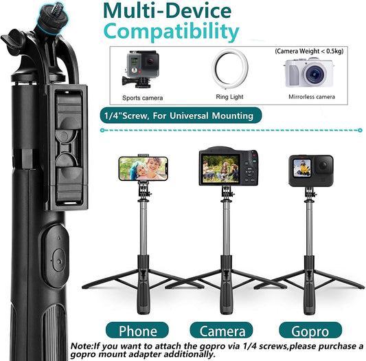 Foldable Tripod Selfie Stick with Bluetooth Remote Control