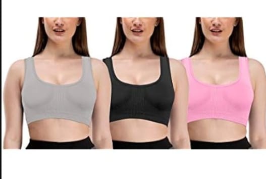 Pack of 3 women wearing Enamor low-impact cotton sports bras.